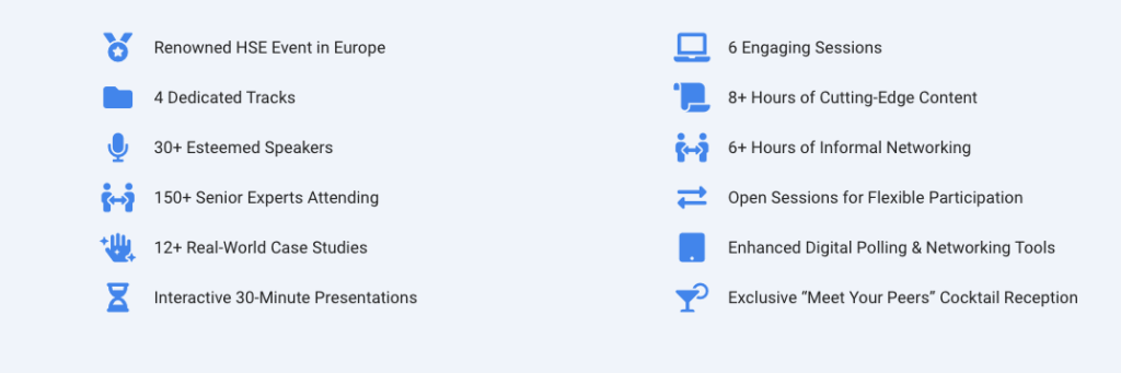 The conference brings together 30+ experts to share insights into critical HSE topics, combine strategic panels, practical case studies, and interactive sessions, ensuring engaging, actionable takeaways.